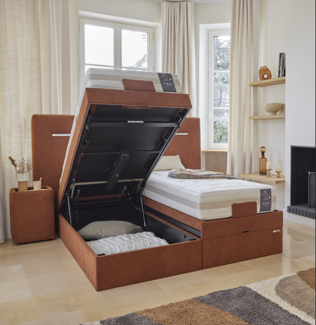 Les lits coffres de relaxation André Renault combinent un sommier électrique ajustable à un espace de rangement généreux, pouvant atteindre jusqu’à 972 litres pour un couchage 180×200 cm Le Lit. Ce système permet de libérer de l’espace dans la chambre en offrant un coffre dissimulé sous la literie, idéal pour ranger linge de maison et objets personnels