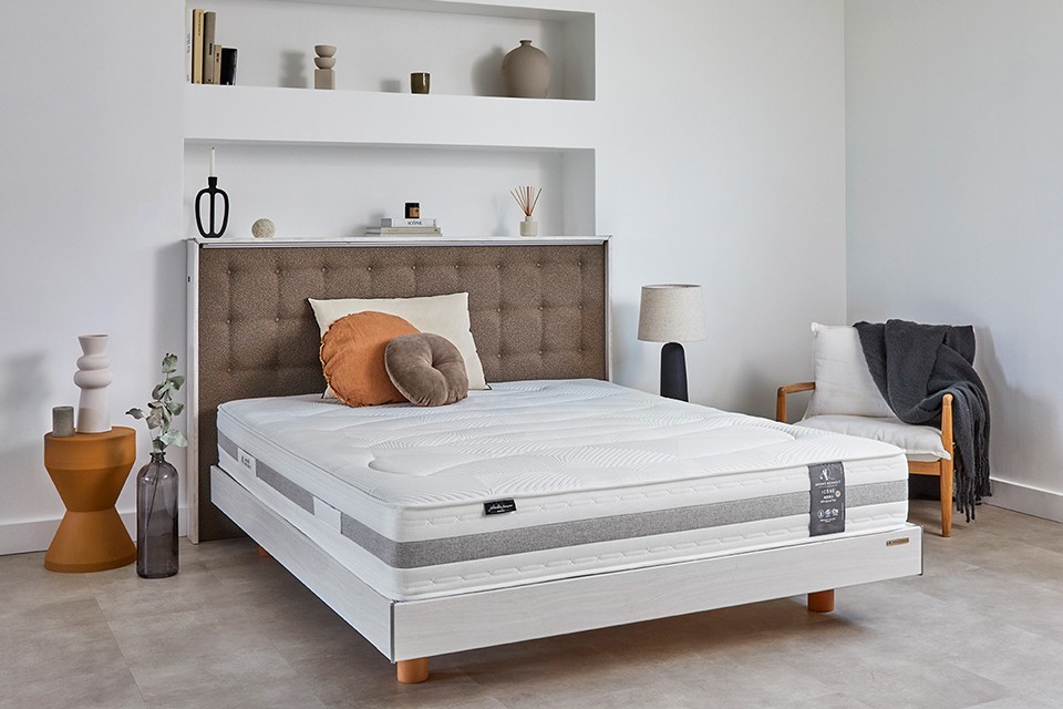 Le matelas André Renault haut de gamme allie technologie de pointe et savoir-faire artisanal français : ressorts ensachés très nombreux, mousses innovantes comme l’Élastorem® Soja, latex naturel ou Graph’In thermorégulant.